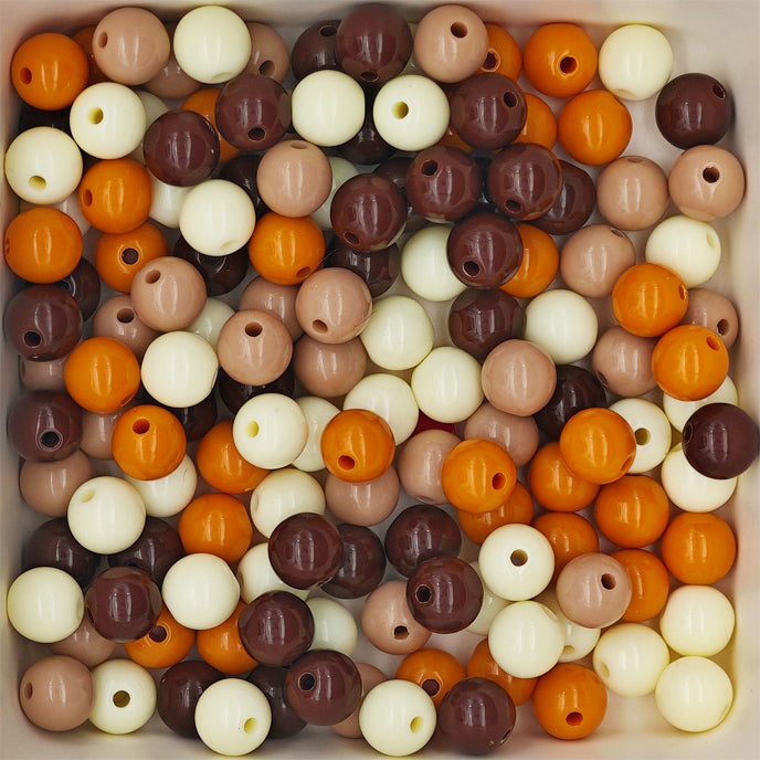 Smooth acrylic beads are packaged in an assorted variety of different colors. Lightweight beads are colorfast.