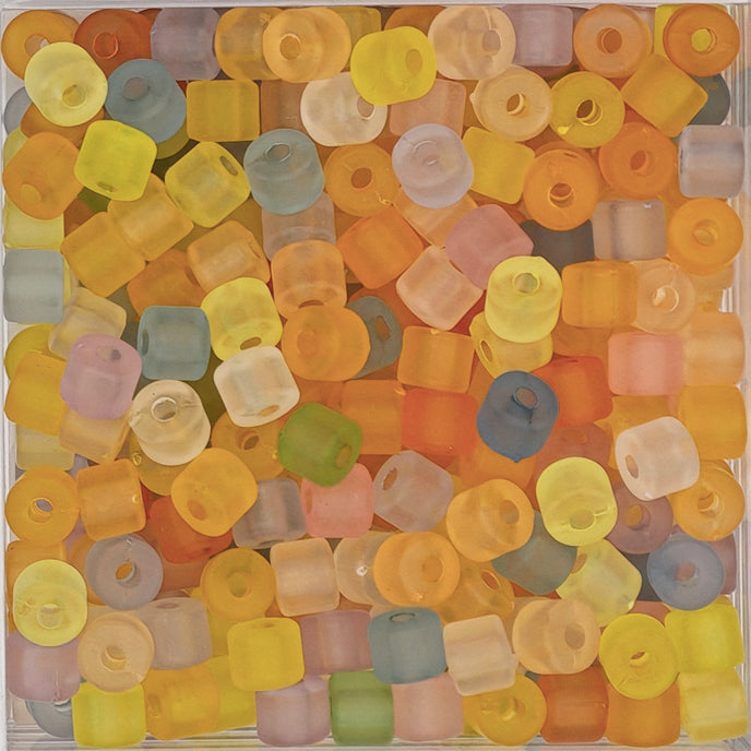 Smooth acrylic beads are packaged in an assorted variety of different colors. Lightweight beads are colorfast.
