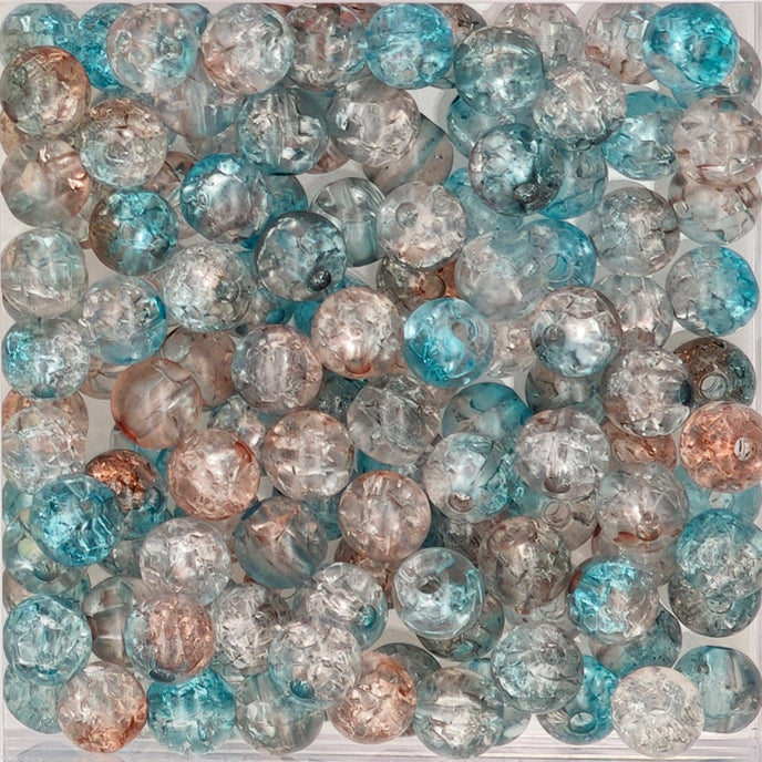 Smooth acrylic beads are packaged in an assorted variety of different colors. Lightweight beads are colorfast.