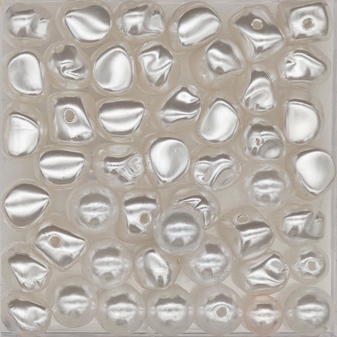Smooth acrylic beads are packaged in an assorted variety of different colors. Lightweight beads are colorfast.